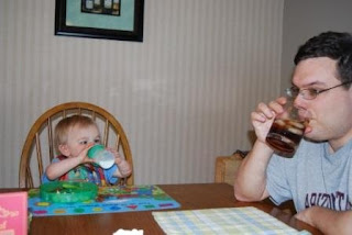 yes, the high chair has been replaced with a booster seat (we think it's making Paul feel like a 'big boy' at the table).